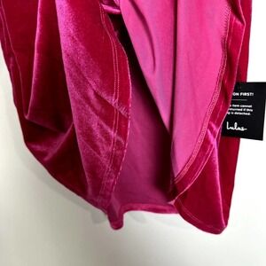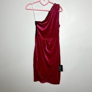 Lulus NWT All The Luxe Velvet Lace One-Shoulder Tulip Mini Dress Hot Pink Sz Small