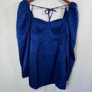 Lulu’s NWT Burst Into Bloom Navy Blue Satin Floral Jacquard Mini Dress Sz M