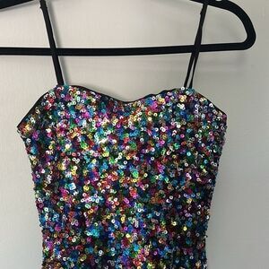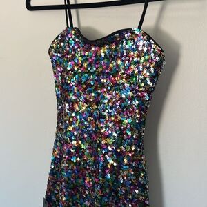 Party dress, evening wear, sequin mini dress, skater dress, vibrant fashion, trendy women's clothing, new with tags, stylish and comfortable, bold statement, special occasion wear.