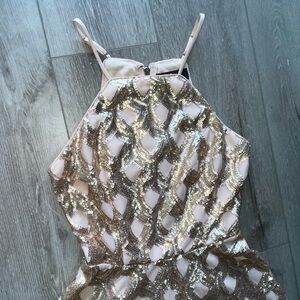 Lulus NWT Dancing Lights Rose Gold Sequin Skater Dress XS