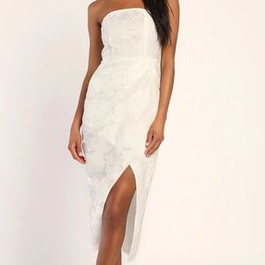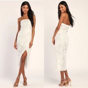 Lulus NWT Dreamy Vision Floral Burnout Jacquard Strapless Midi Dress Medium