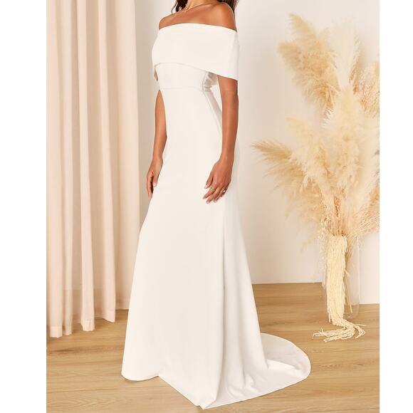 Lulus NWT Exceptional Romance White Off-the-Shoulder Mermaid Bridal Gown Dress