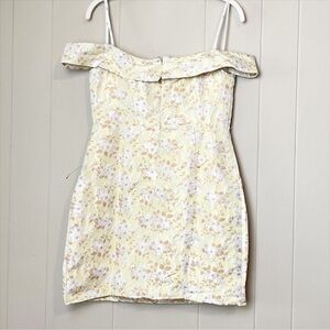 Lulus NWT Favorite Song Yellow Floral Jacquard Off-the-Shoulder Mini Dress M