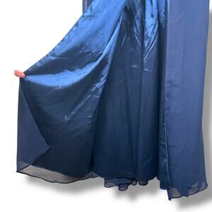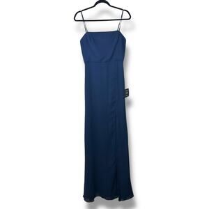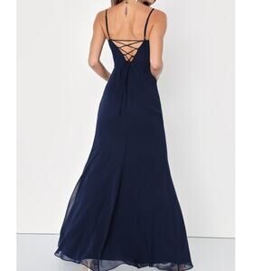 Lulus NWT Feeling Elegant Navy Blue Lace-Up Slit Chiffon Maxi Dress Medium
