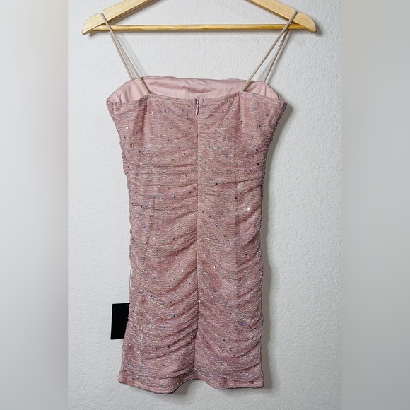 Lulu's * NWT Flirty Vibes Mauve Pink Sparkly Ruched Bodycon Mini Dress Small