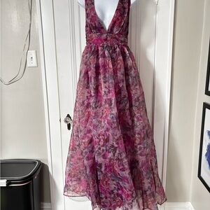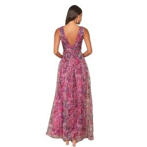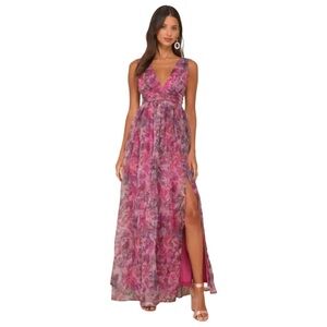 Lulus NWT Garden Romance Magenta Floral Print Organza Maxi Dress SMALL