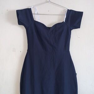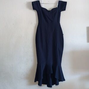 Lulu’s NWT How Much I Care Midnight Blue Off-the-Shoulder Midi Dress Size Small