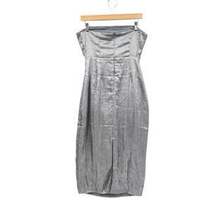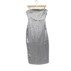 Lulu’s NWT Ideal Essence Shiny Silver Metallic Strapless Elegant Midi Dress