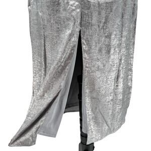 Style: Ideal Essence Shiny Silver Metallic Strapless Midi Dress