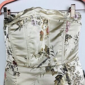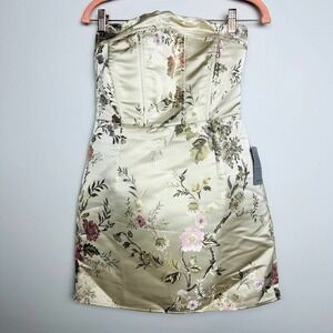 Lulus NWT Living the Luxe Life Floral Jacquard Strapless Mini Dress Beige Medium