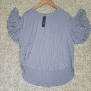 Lulus NWT Oversized Slate Blue Petal Sleeve High Low Blouse Size M