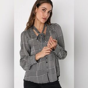 Lulus NWT Patterned Blouse With Tie