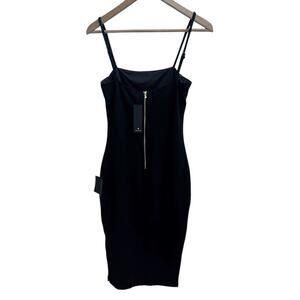 Lulu's NWT Paulina Black Knit Bodycon Midi Dress Sz Small Stretchy Side Slit LBD