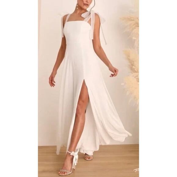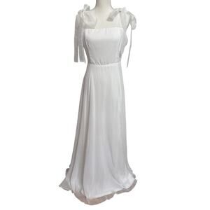 Lulus NWT Radiant Romance White Tie-Strap Maxi Dress Lined Chiffon Wedding