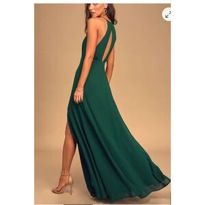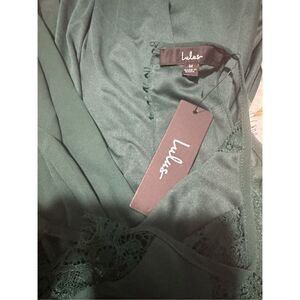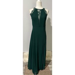 Lulus NWT Romantic mood hunter green lace sleeveless side slit maxi dress M