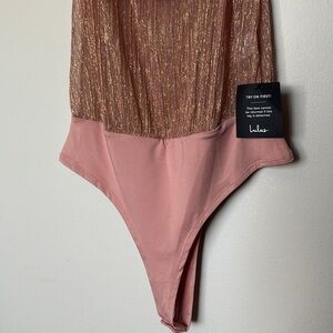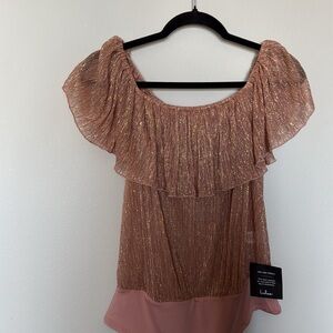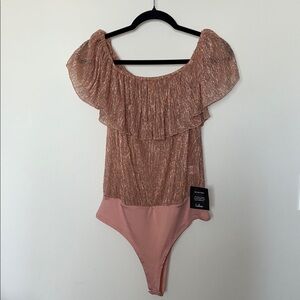 Lulu’s NWT Rose Gold Bodysuit Off Shoulder Scoop Neck Tank Shimmer Sparkle Large