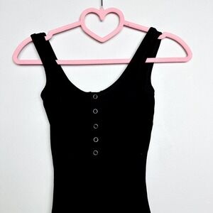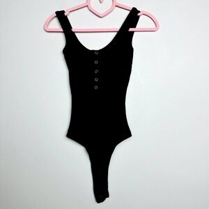 Lulus NWT Simple Appeal Heather Ribbed Sleeveless Henley Bodysuit Black Size XS