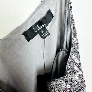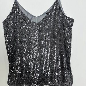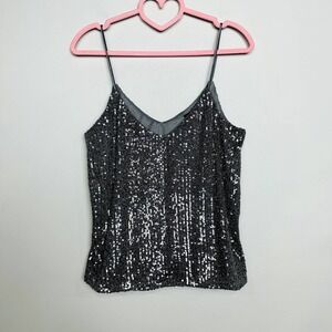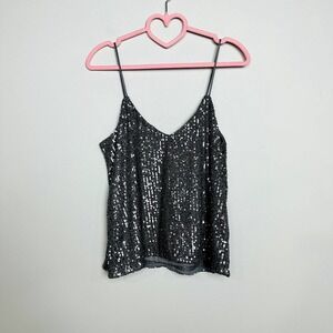Lulu's NWT Sparkling Glimpse Sequin Sleeveless Scoop Neck Cami Top Gray Medium