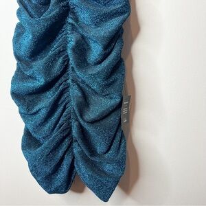 Lulus NWT Striking Moves Teal Metallic Ruched Body Mini Dress