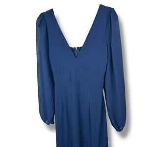 Lulus NWT Tier Elegance Navy Long Sleeve V-Neck Chiffon Tiered Maxi Dress Medium