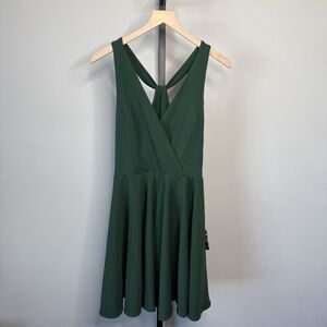 Lulus NWT Wonder Whirl Dark Green Twist Back Skater Dress - Size XL