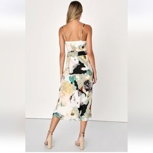 Lulus NWTs Inspired Aura White Multi Abstract Print Cowl Midi Dress