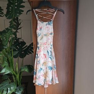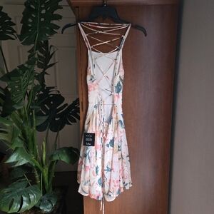 Lulu's Natural World Cream Floral Print Lace-up Skater Dress XS. New with tags, seeing no flaws.