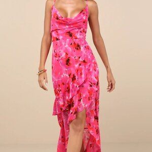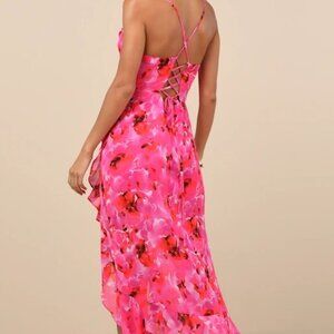 Lulus Navina Pink Floral High-low Midi Dress - NWT