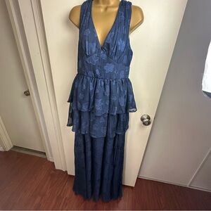 Lulus Navy Blue, Cherished Elegance, Burnout Jacquard, Tiered, women’s Maxi Dress. NWOT, Size M