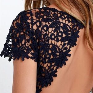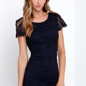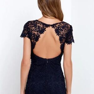 Lulu’s Navy Blue Lace Key Hole Back dress NWT