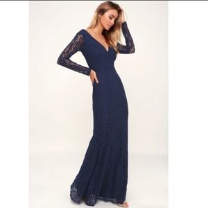 All over lace gown with cut out sleeves and open back detail. Sits slightly off shoulder. Purchased as a bridesmaid dress.