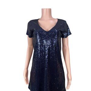 Lulus Navy Blue Sequin Short Sleeve V-Neck Shift Dress Women SZ XS