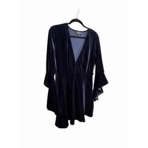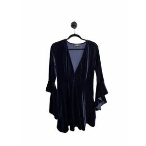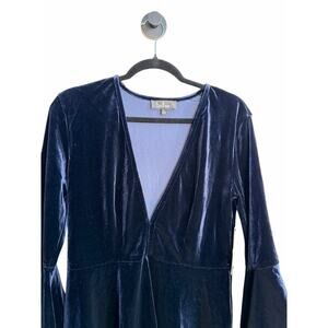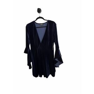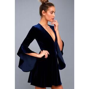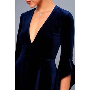 Lulus Navy Blue Velvet Bell Sleeve Skater Dress Small Deep V Cocktail Party