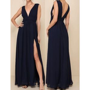 Lulu's Navy Blue V-neck and Back Banded Waist Maxi Formal Dress M