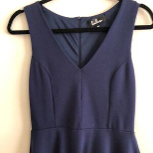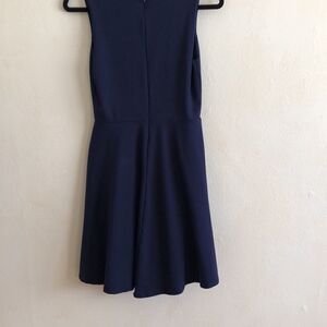 Lulu's Navy Blue Spring Summer Old Money Modest V Neck Flair Skirt Dress SZ M