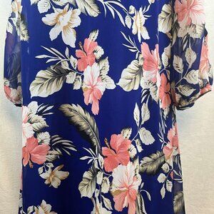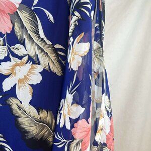 Lulus Navy Floral Split Sleeve Dress Sz Small Wedding Vacation Celebration
