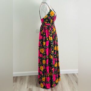 Lulu's Navy Neon Floral Print Sleeveless Strappy Maxi Dress Size Small