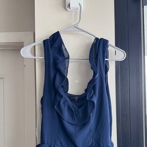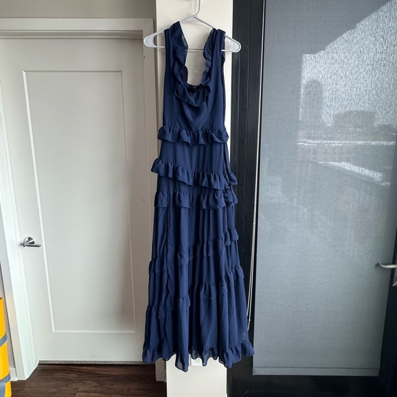 Elegant navy maxi dress with layered ruffles. Sleeveless and stylish. Ideal for evening occasions. Never worn, in brand new condition with tags.