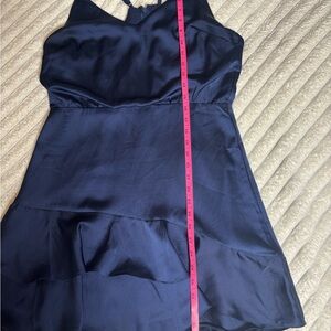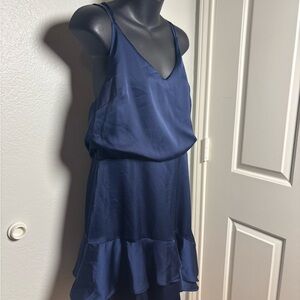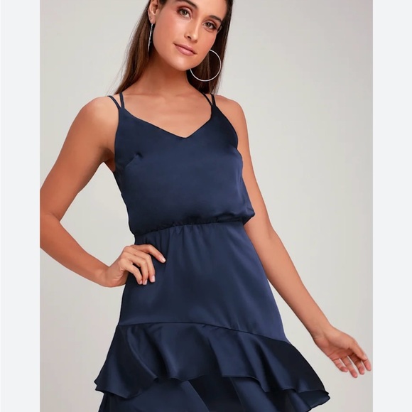 Lulu's Navy Satin Ruffle Mini Dress