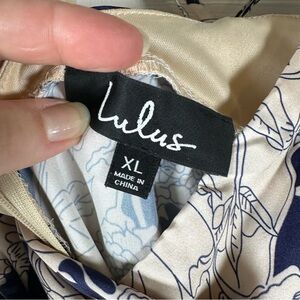 Elegant maxi dress with floral pattern. Features a navy and cream color scheme. Perfect for special occasions.