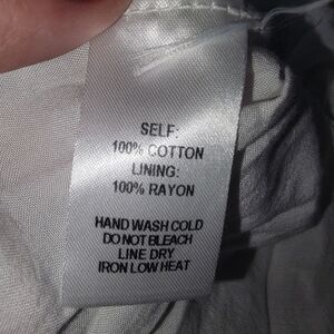 Self: 100% Cotton. Lining: 100% Rayon.