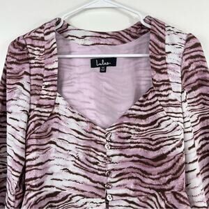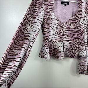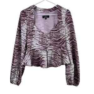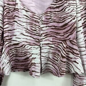 Lulu's New Womens XS Wild Gaze Animal Print Button-Up Long Sleeve Peplum Top