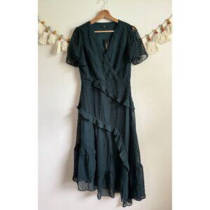 Lulus Next To You Emerald Green Swiss Dot Ruffled Midi Dress Romantic Feminine M