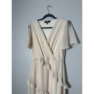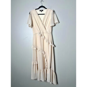 Lulus Next To You Swiss Dot Ruffled Midi Dress Size M Fairy Coquette Asymmetric