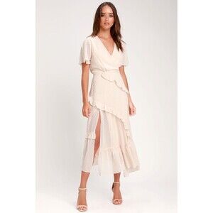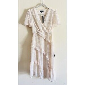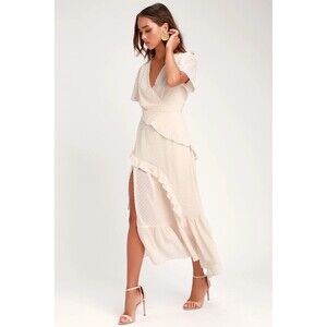 Lulu's Next to You Cream Swiss Dot Ruffled Midi Dress Women's Size Small NWT