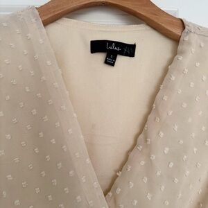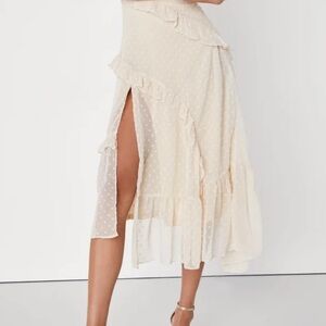 Lulus Next to You Women’s Easter Cream Swiss Dot Ruffled Midi Dress Small 4 6