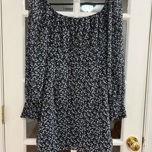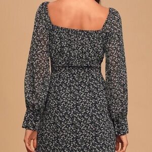 Lulus Nothing But Bliss Navy Blue Floral Print Button-Up Mini Dress - Size M - pre owned - great condition