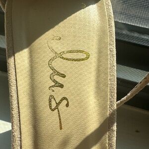 Worn once for a wedding. Missing a hardware piece at the end of a strap (not noticeable when laced up) Otherwise in excellent condition