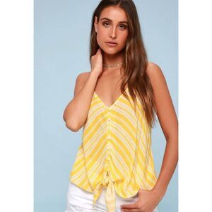 Lulus - Oceanna Yellow Striped Button-Up Tie-Front Tank Top sz Small EUC adjustable straps