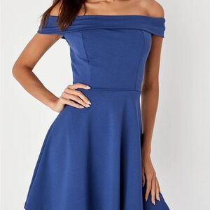 Lulu's Off The Shoulder Skater Blue Dress